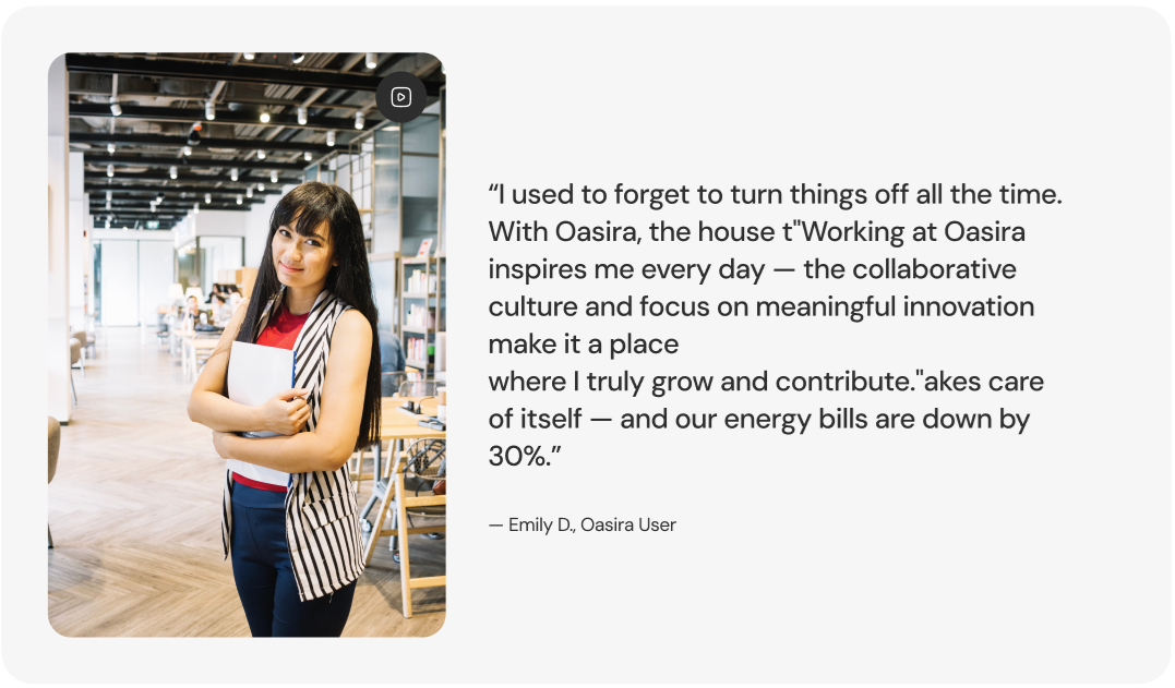 At Oasira, we empower our team to create smarter homes that change lives — fueling your passion with meaningful work and measurable achievements.