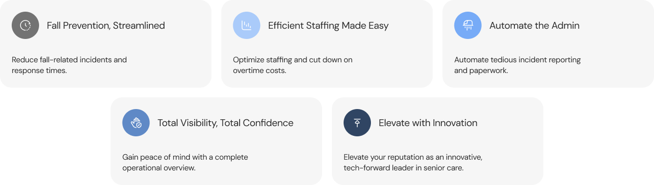 We saw the immense pressure on care facilities and built a powerful, non-intrusive AI platform that works with your existing infrastructure to provide a new layer of intelligent oversight. We handle the data, so your team can focus on the care.